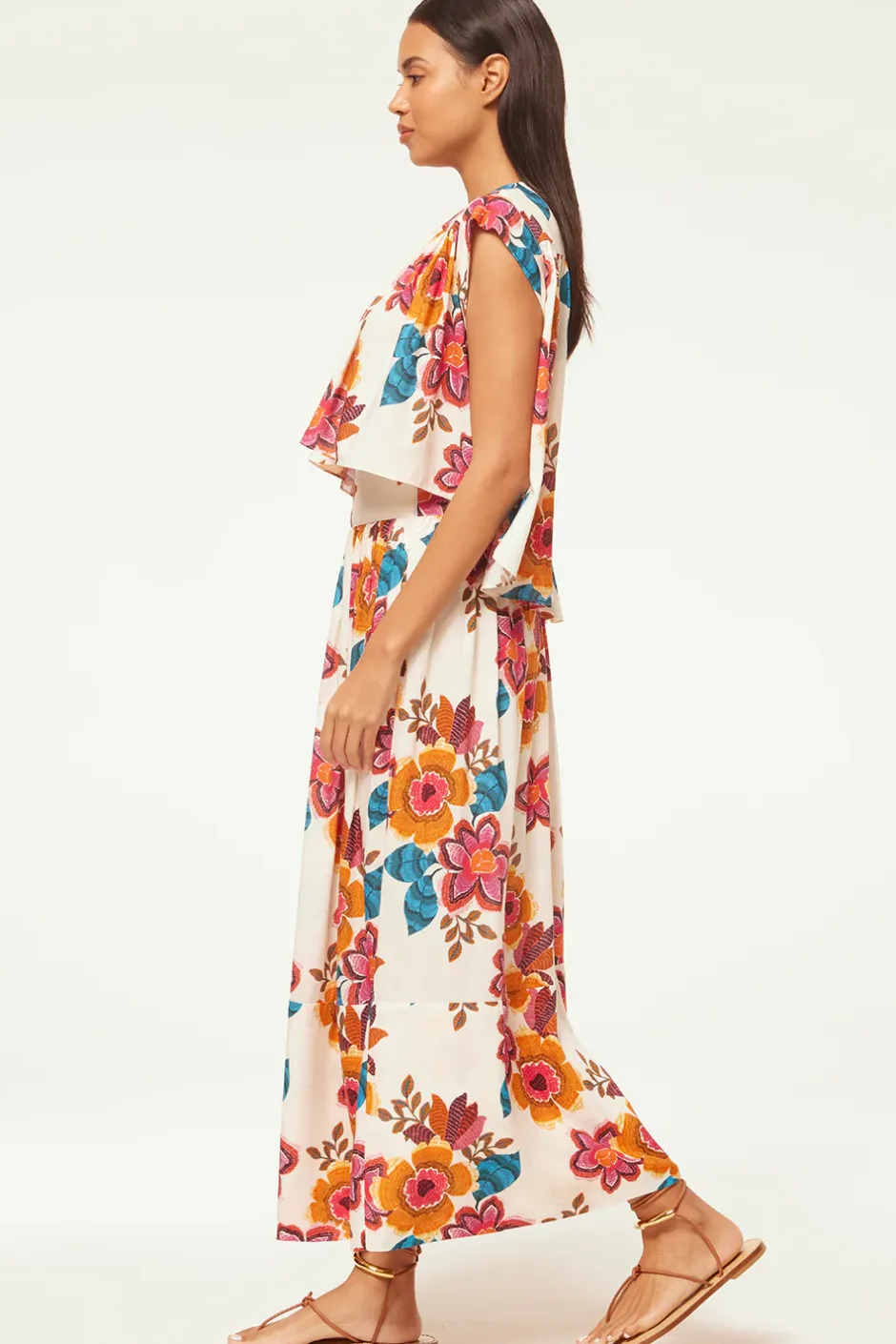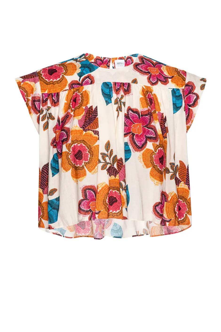 Alina is a new easy top cut from a vibrant Flora Marbella printed linen blend. This boxy shape features a high neckline and cap sleeves with a keyhole button back closure. The back hem is slightly longer. Pair with the coordinating Limor skirt for a sunny Summer set or with your favorite pair of jeans.