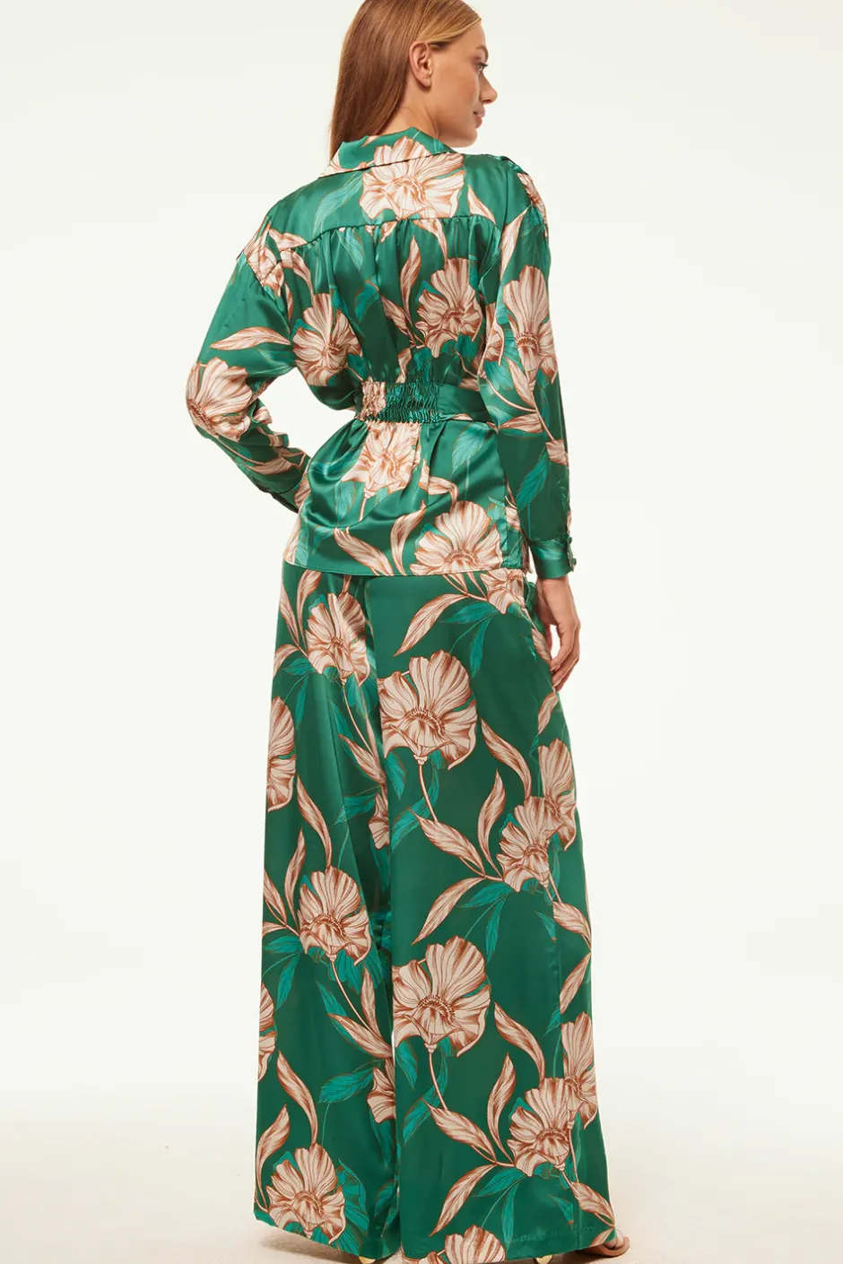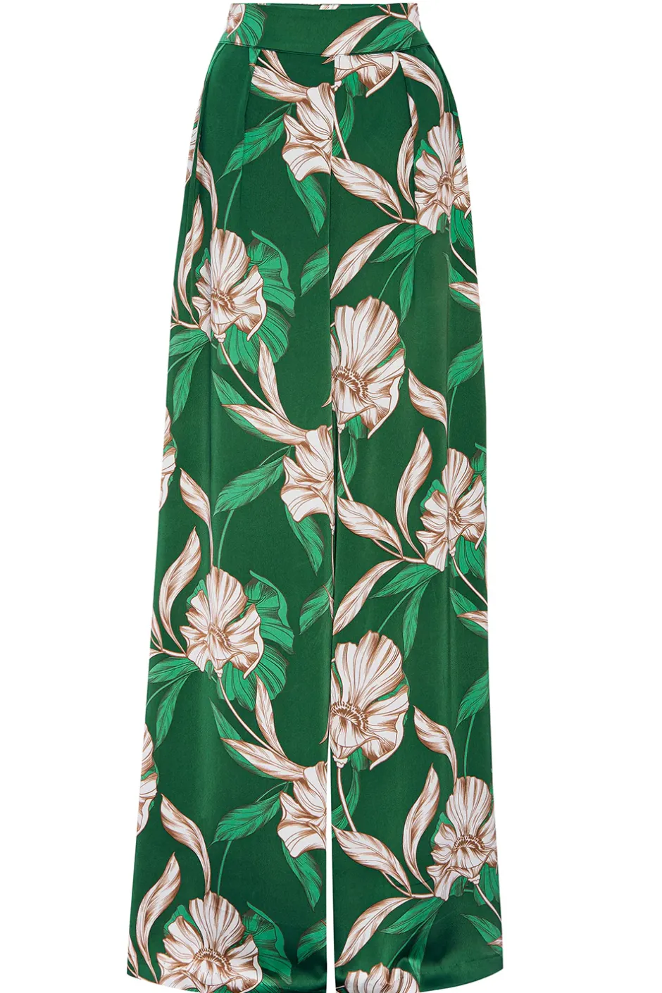 The Filippa pant is a beautifully tailored wardrobe staple cut from gorgeous Cartagena Flora printed satin and features a wide leg and mid rise with a banded waist and back darts. The front features flattering inverted pleats, a hidden side zip closure and double side slit pockets. Pair with the coordinating Farah top for a chic statement set.