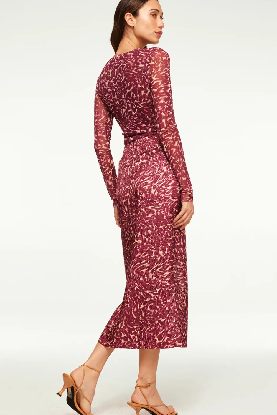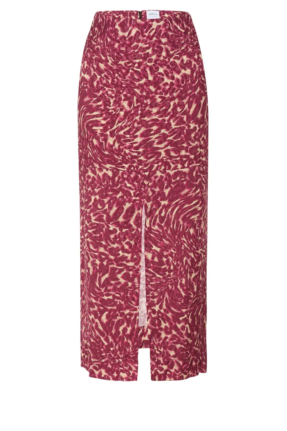 Ivan is a chic fitted pencil skirt cut from a fuchsia leopard print jacquard. Featuring a front slit and hidden back-zip closure. Pair with the coordinating Lula top for the perfect holiday set.