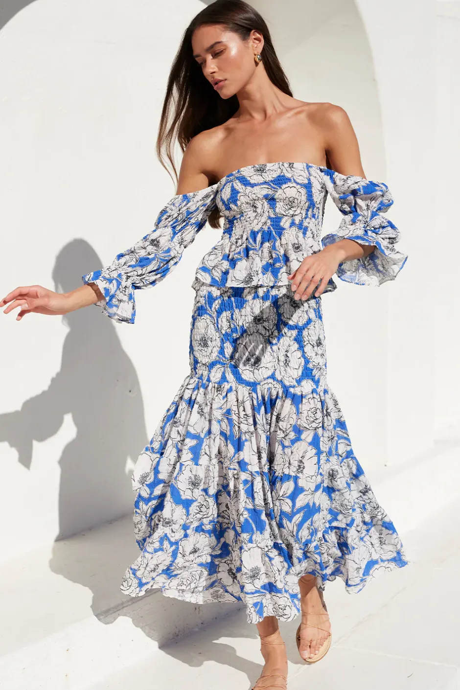 Our new Lola Convertible is an effortless addition to your wardrobe. Featuring a wide elastic shirred waist, this versatile piece cut in a Gardenia crinkle fabrication can be worn as a chic strapless dress or as a skirt paired with our coordinating Vida top.