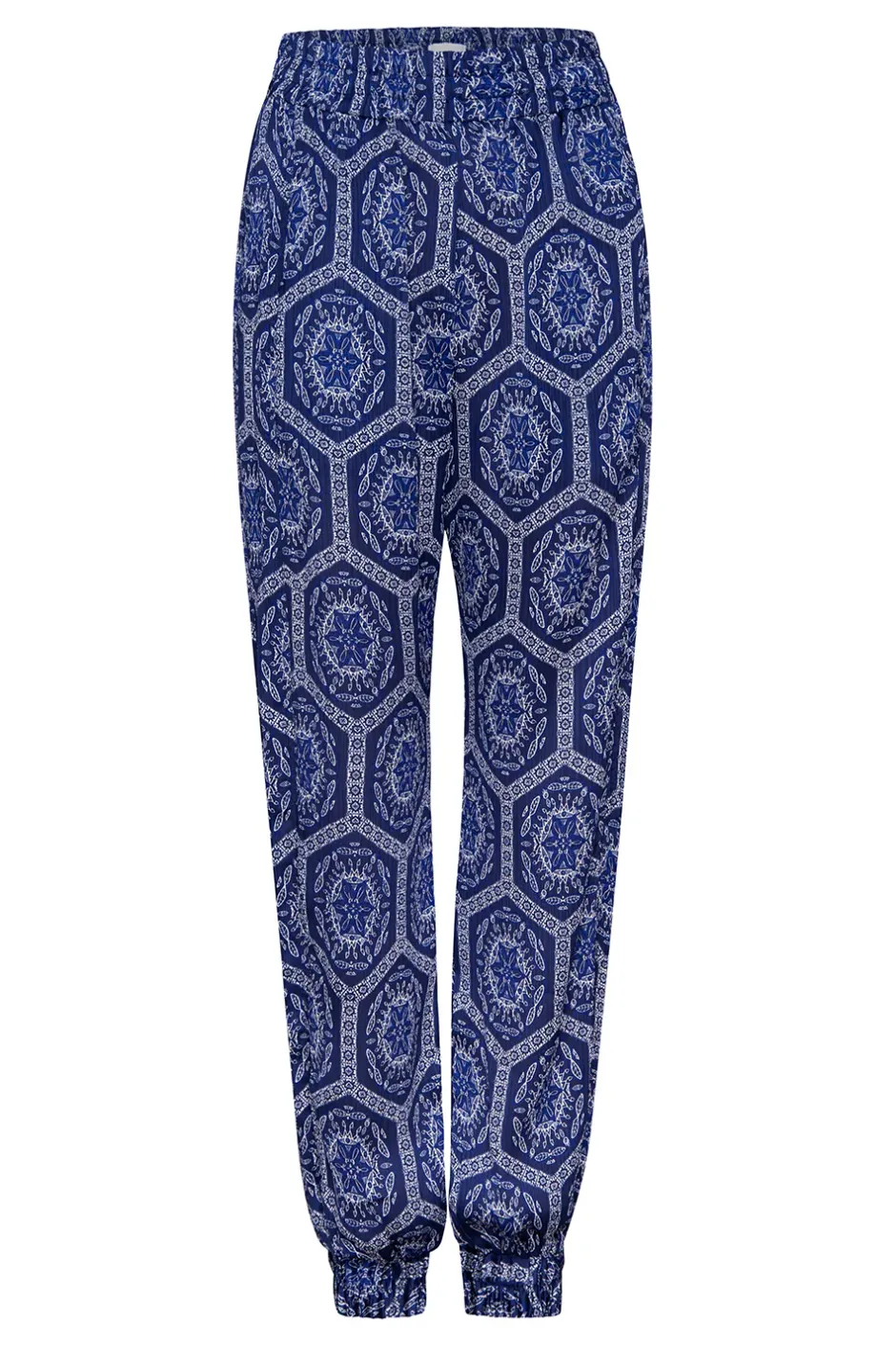 The Noomi pant brings an elevated touch to a relaxed wardrobe. Handcrafted from a deep lapis satin, they feature a covered elastic waistband, side-slit pockets and elastic cuffs. Pair this jogger style with the coordinating Saya cami and Veruschka robe for the perfect getaway-ready look.