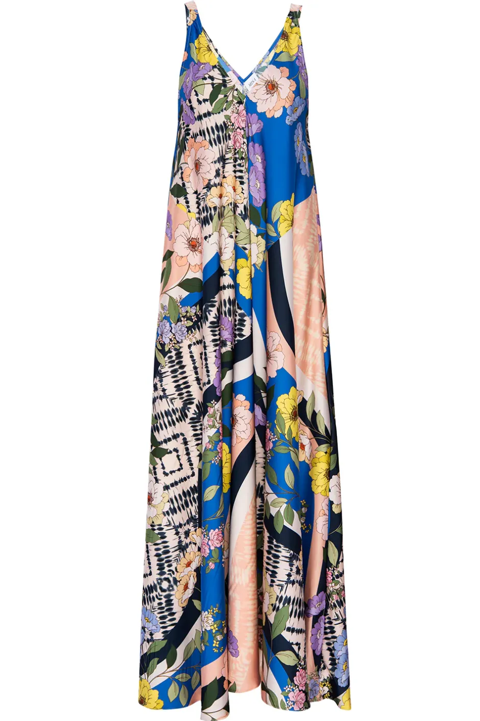 The Notta dress is a work of art, cut from our gorgeous surrealism-inspired Lucid Dream print satin. Vivid blooms, psychedelic stripes and shibori graphics adorn this flowing maxi dress. A simple silhouette is the perfect showcase for this stunning print, featuring a v-neckline and v-back. Slipover style. Pair with a structured blazer for the perfect transitional Spring outfit.