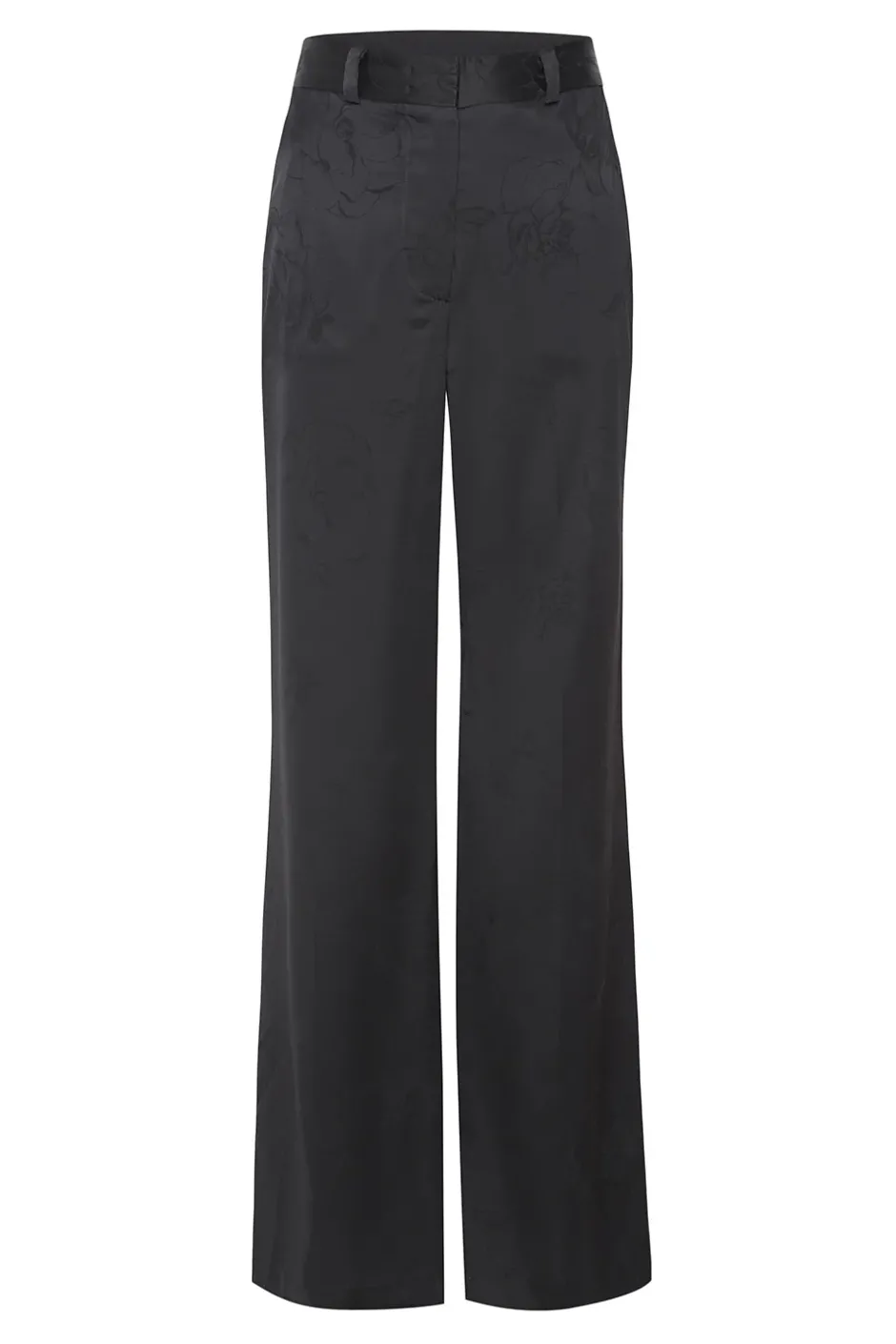The Remi pant is cut from a black satin jacquard with floral tonal detailing throughout. These perfectly tailored pants feature a high rise and slightly flared leg. Banded waist with belt loops, zip fly and button tab closure. Complete the look with our coordinating Lauren blazer.