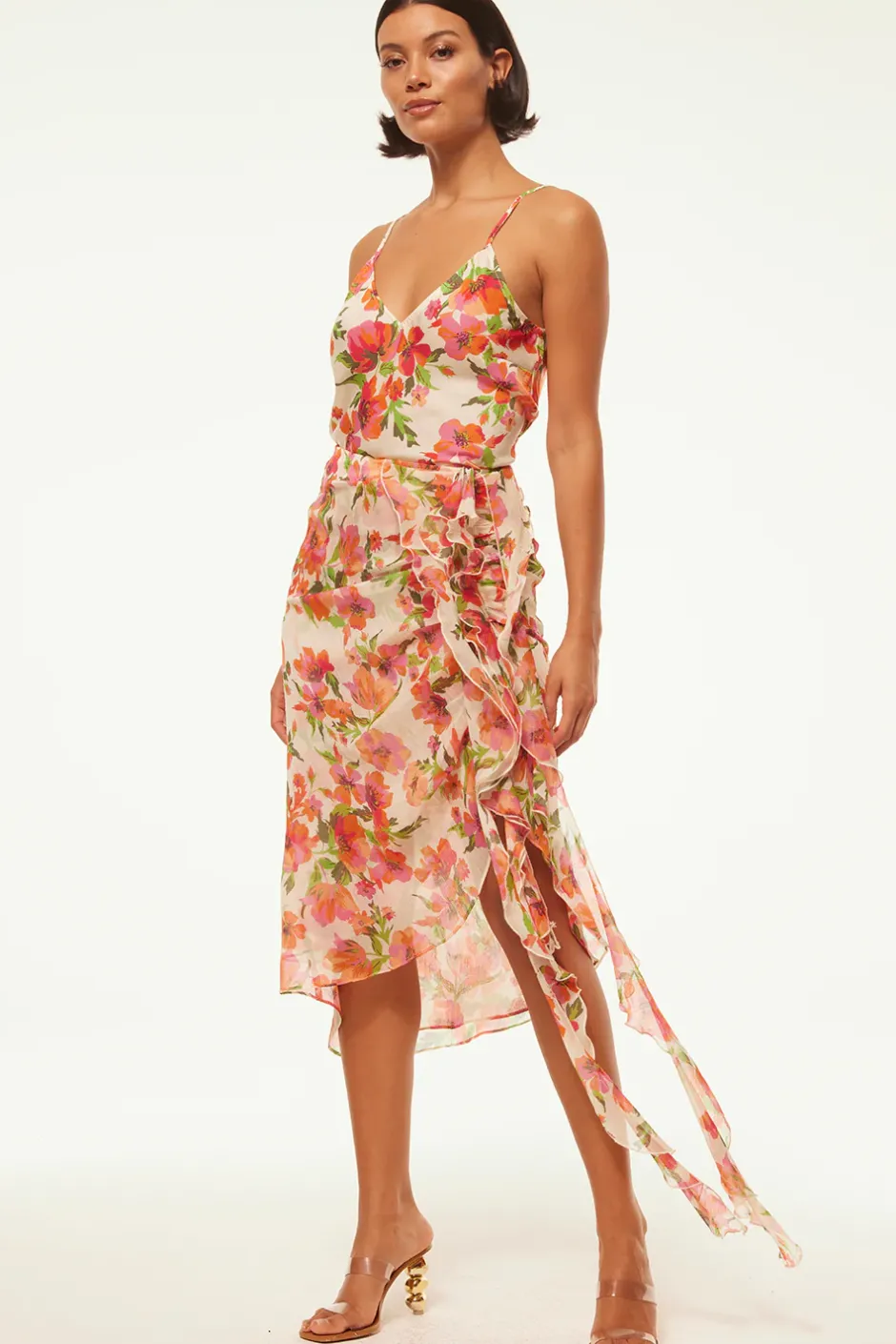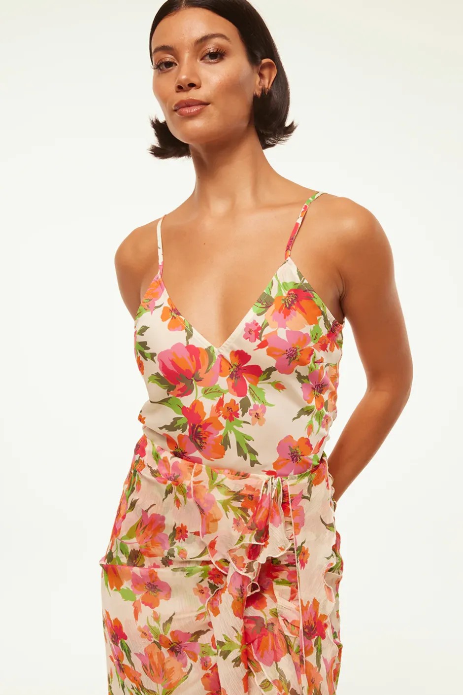 Cut from a lovely Palmarei Blooms printed satin, the Rena camisole features a v-neckline and adjustable spaghetti straps. For a chic set wear with the coordinating Farida skirt.