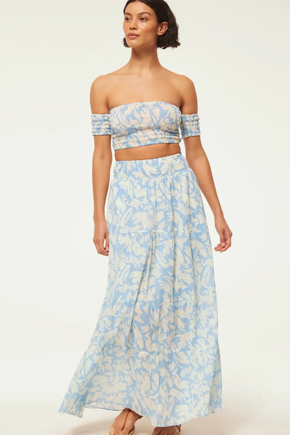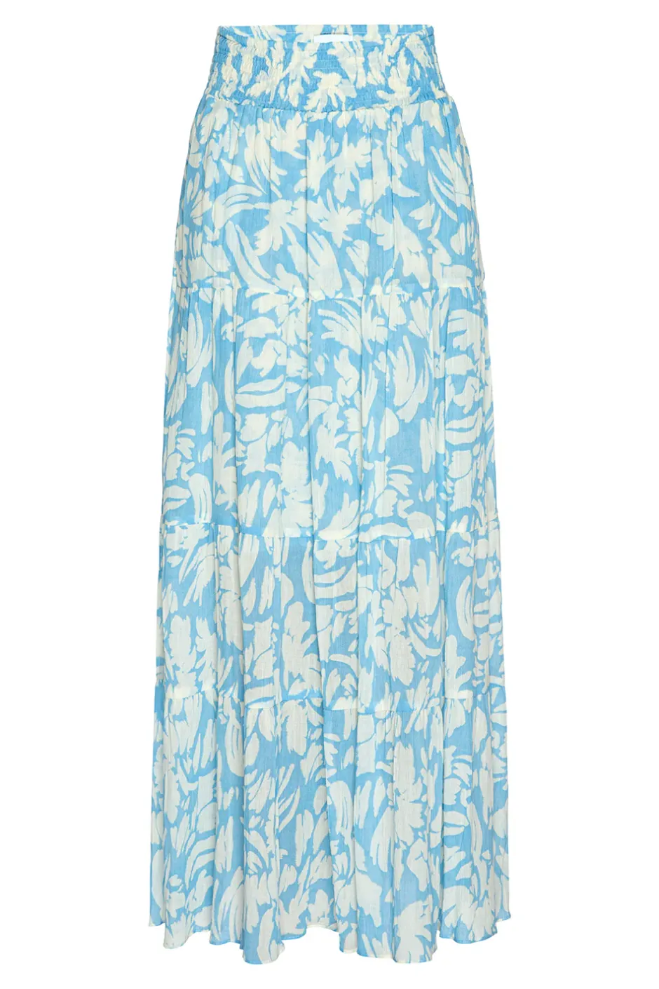 The Yelena maxi skirt is cut from a gorgeous Patmos Sky printed cotton. A smocked elastic waist and side slit pockets finish off this timeless style that can be paired with everything from your favorite tee to the coordinating Alba top for the perfect Summer set.