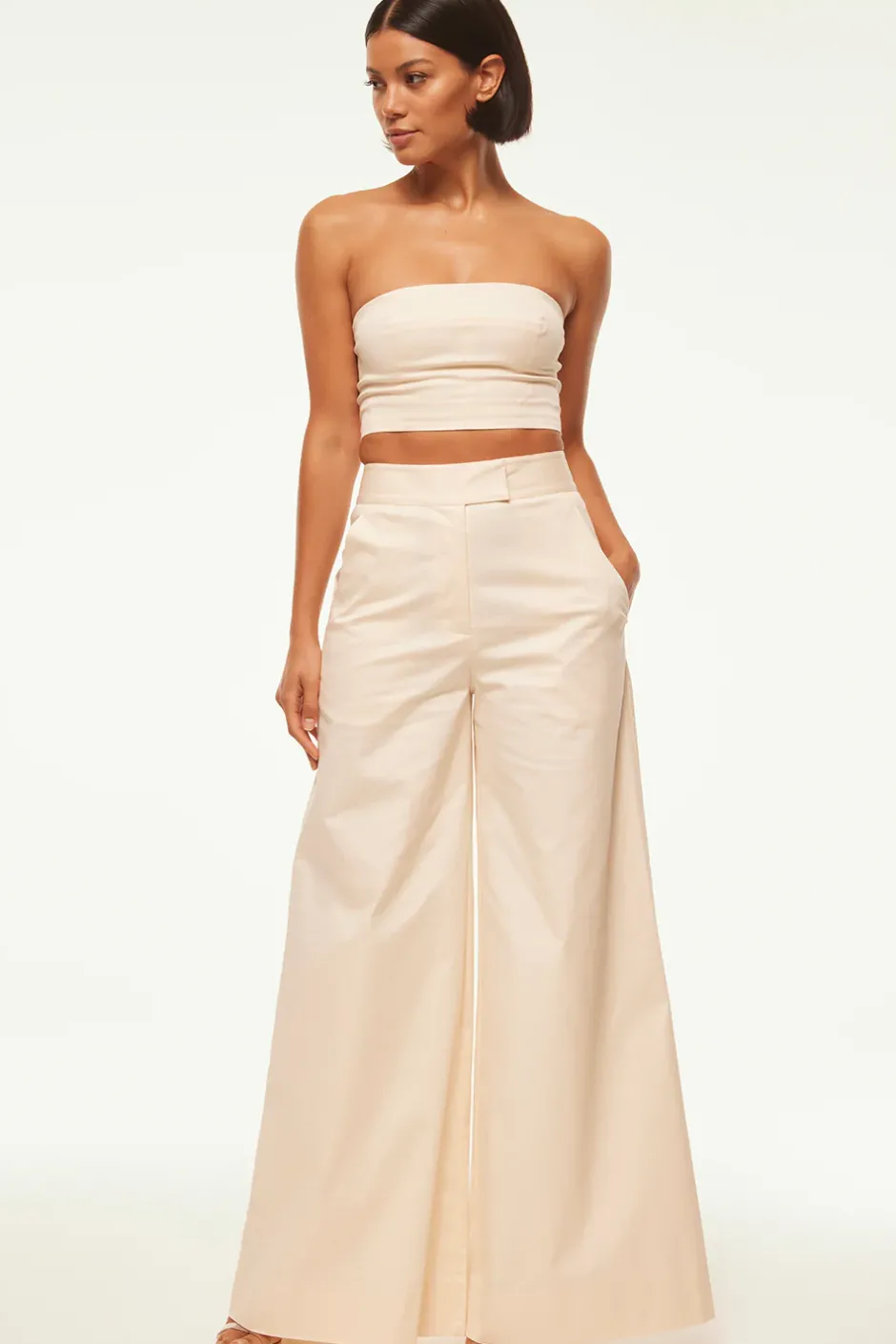 Our candy bandeau is an easy layering piece for your Spring wardrobe. Fitted and slightly cropped with just the right amount of structure in a stretch cotton fabric. Featuring a back zip closure. Shown with the coordinating Nico pant and Viva blazer.