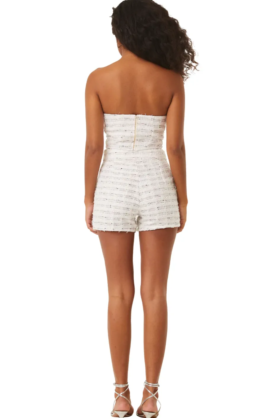 The Choupette is a tailored high-waisted short cut from a winter white tweed boucle with shimmering metallic woven details. Side slit pockets and a hidden side zipper detail. Complete the look with our coordinating Penny blazer and Astor bustier.