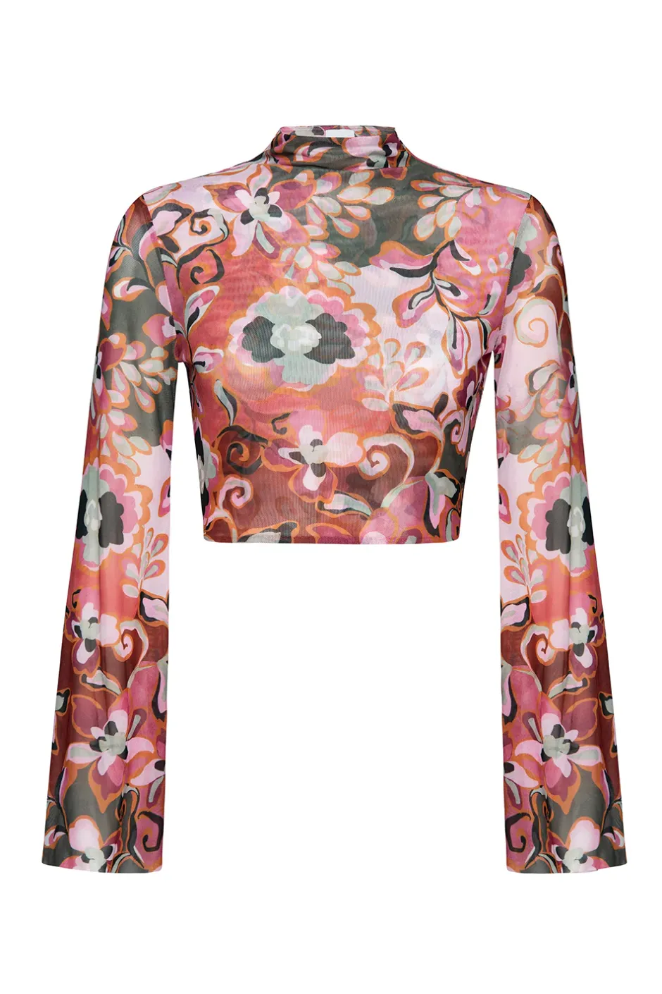 Ebba is a figure-hugging cropped mock neck turtleneck top featuring long belled sleeves. Cut from our Resort Batik mesh and double lined. Pair with the coordinating Ekat skirt for a getaway ready look.