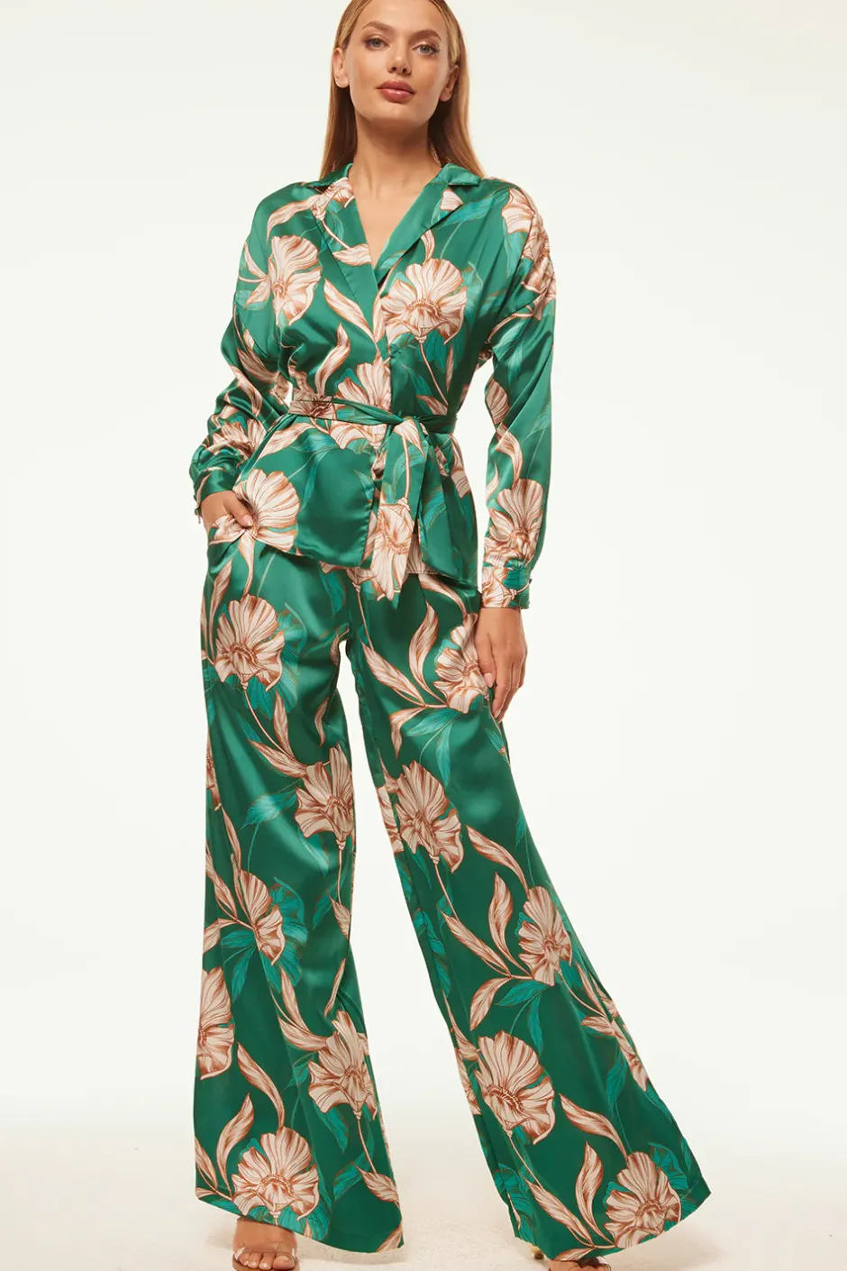 The Filippa pant is a beautifully tailored wardrobe staple cut from gorgeous Cartagena Flora printed satin and features a wide leg and mid rise with a banded waist and back darts. The front features flattering inverted pleats, a hidden side zip closure and double side slit pockets. Pair with the coordinating Farah top for a chic statement set.