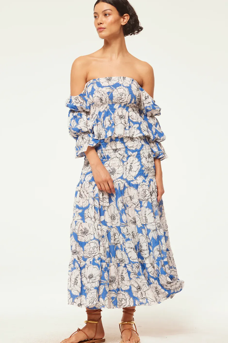 Our new Lola Convertible is an effortless addition to your wardrobe. Featuring a wide elastic shirred waist, this versatile piece cut in a Gardenia crinkle fabrication can be worn as a chic strapless dress or as a skirt paired with our coordinating Vida top.