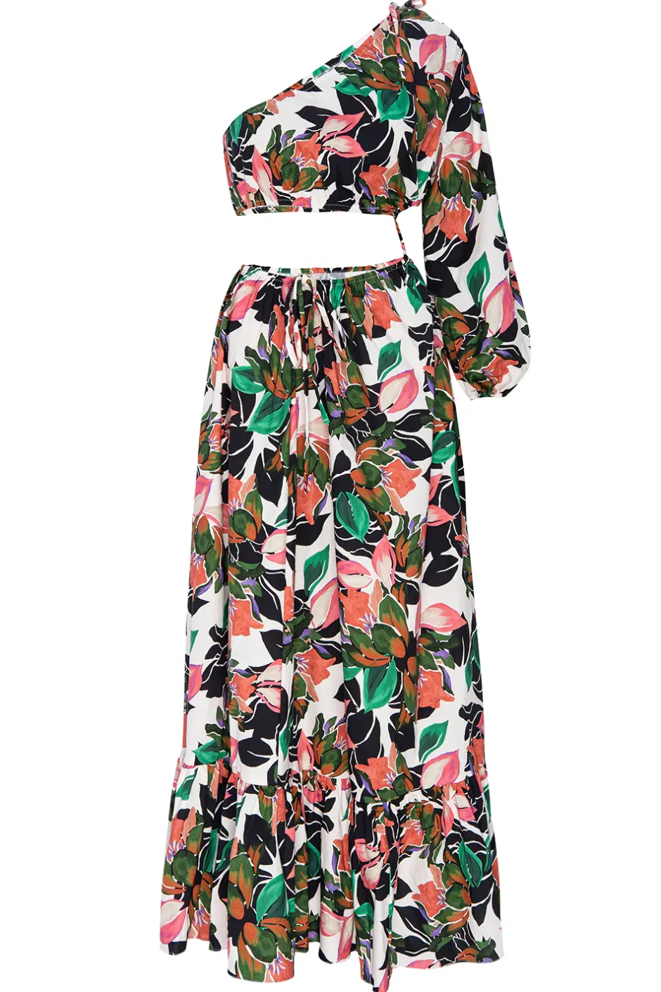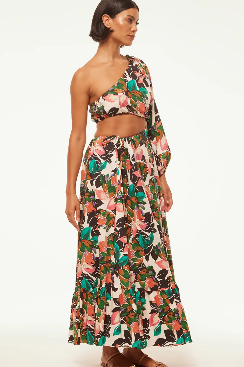 A chic silhouette made to turn heads, the Mahika is handcrafted from a tropical floral printed cotton poplin. A one shoulder sleeve leads into a cutout from the waistline to the open back with adjustable side tie detail. This gorgeous ready-to-wear silhouette transitions effortlessly from daytime to evening, it’s a perfect style for Spring and beyond…