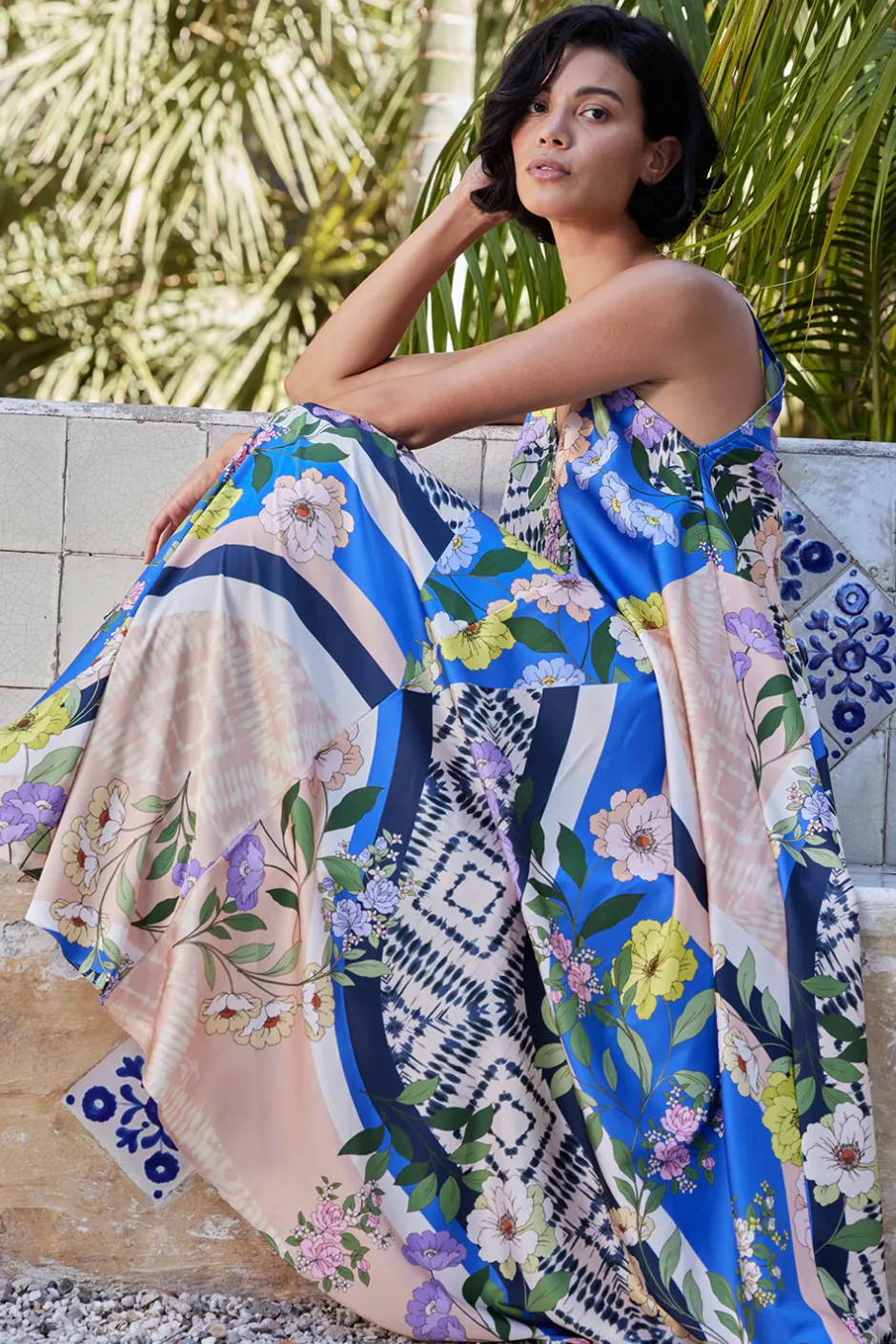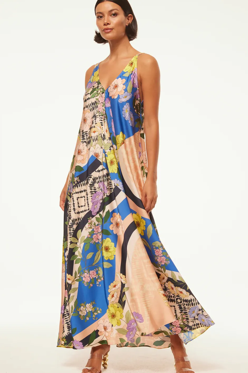 The Notta dress is a work of art, cut from our gorgeous surrealism-inspired Lucid Dream print satin. Vivid blooms, psychedelic stripes and shibori graphics adorn this flowing maxi dress. A simple silhouette is the perfect showcase for this stunning print, featuring a v-neckline and v-back. Slipover style. Pair with a structured blazer for the perfect transitional Spring outfit.